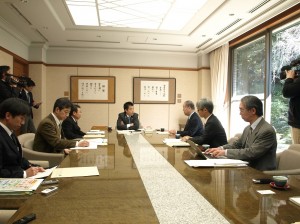 を知事に渡した吉岡座長は、「滋賀県のこの間の一連の原子力問題に関する取り組みに関しては、非常に私たちは高く評価しており、ぜひ力になりたいという意志を表明しに来た」とした上で、以下の2点について、知事への提案を行いました。